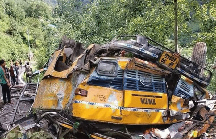 આ બસ સૈંજ ઘાટીના શેંશરથી સૈંજ તરફ આવી રહી હતી. આ દરમિયાન જંગલા નામના સ્થળ પર વળાંક લેતા બસ અનિયંત્રિત થઈ ગઈ હતી અને નીચે ખીણમાં પડી ગઈ હતી.