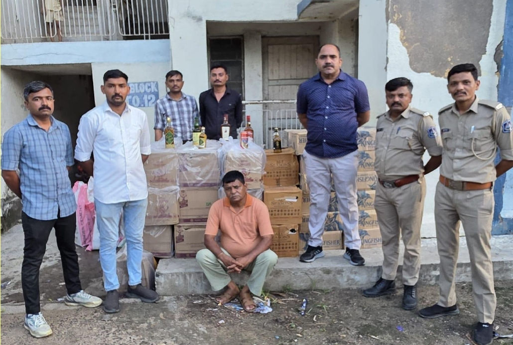 જે બાતમીના આધારે પોલીસ ઇન્સ્પેક્ટર યુ બી જોગારાણા અને સ્ટાફે દરોડો પાડીને તપાસ કરતા ચંદુ મકવાણાના ઘરમાંથી તેમજ નજીકના ગેરેજમાંથી કુલ ૧૧૦૦ બોટલ વિદેશી દારૂ અને ૧૦૦૦ ટીન બિયરનો જથ્થો મળ્યો હતો.